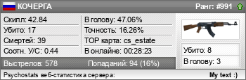 | cs_estate | 17 | 0 | 0.44 | 0.60 | 1 | 57 | 00:28:23 | 2025-01-24 | |