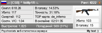.:: [CSB] ^ VaMp1R ::. занимает в статистике ранг #222 из 2,011