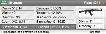 | de_dust2 | 15 | 0 | 0.35 | 0.28 | 1 | 51 | 00:54:27 | 2025-01-30 | |
