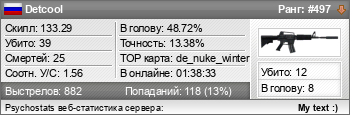 | de_nuke_winter | 17 | 0 | 1.89 | 0.83 | 1 | 21 | 00:20:22 | 2025-02-08 | |