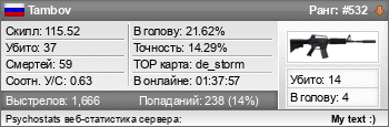 | de_storm | 18 | 0 | 1.29 | 0.46 | 2 | 37 | 00:39:19 | 2025-02-16 | |